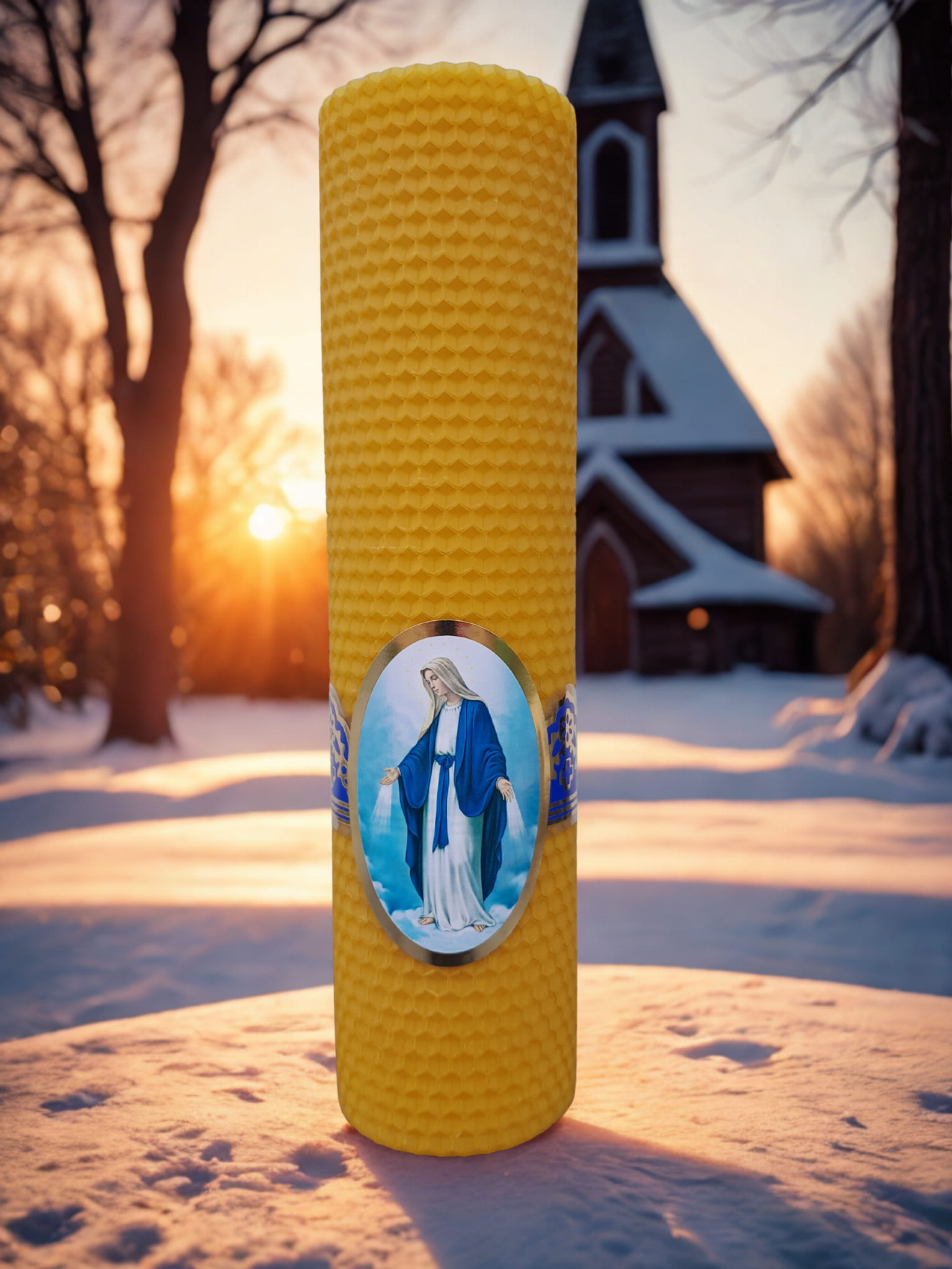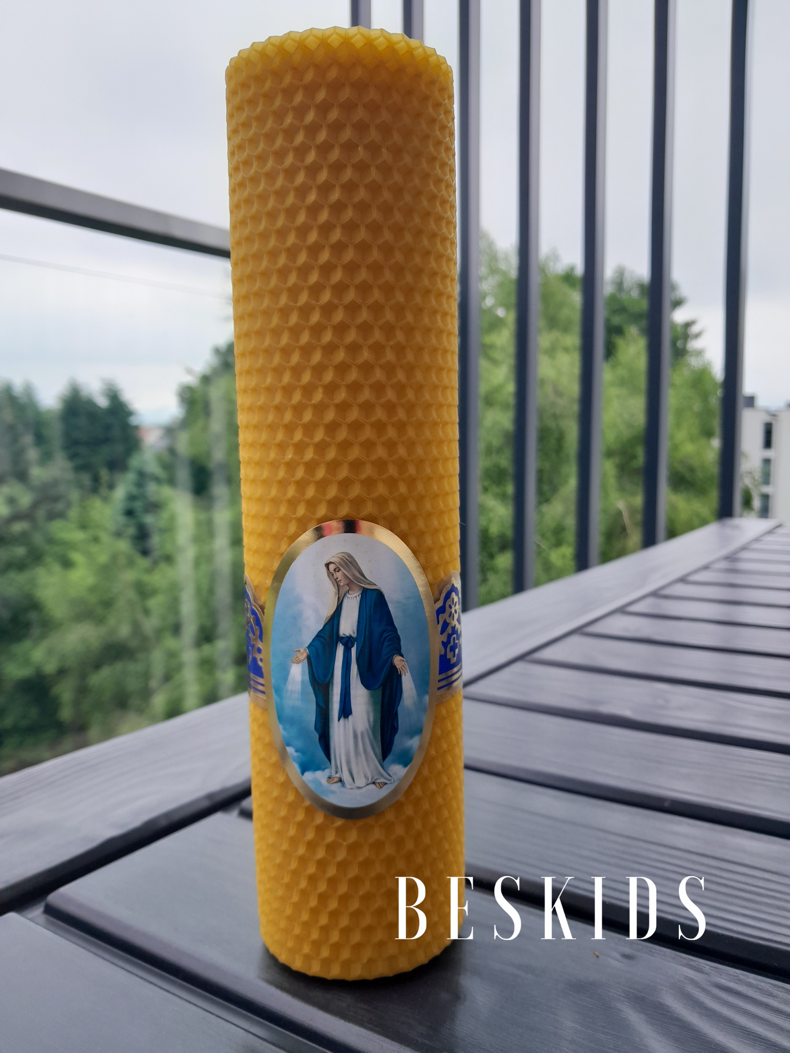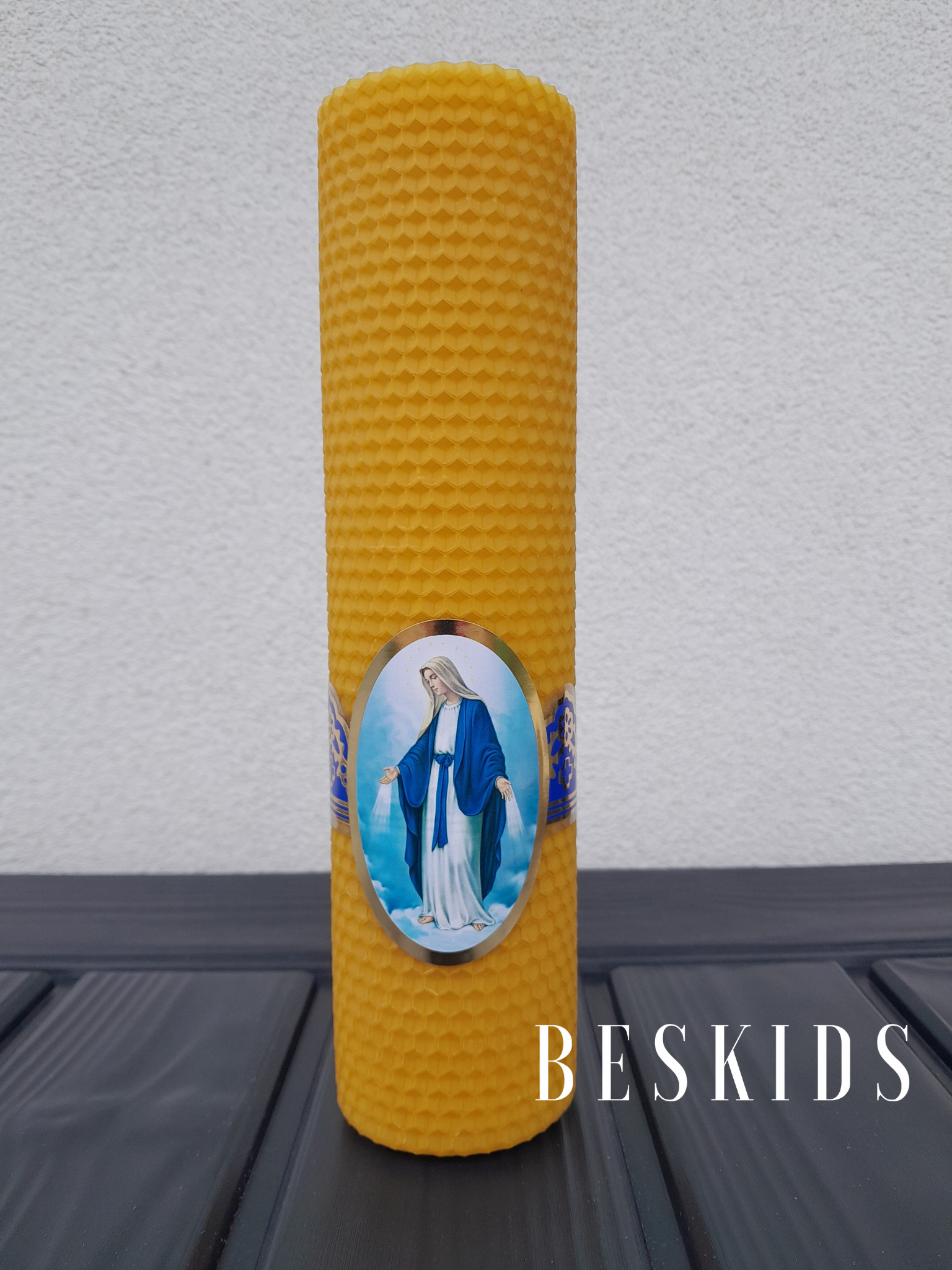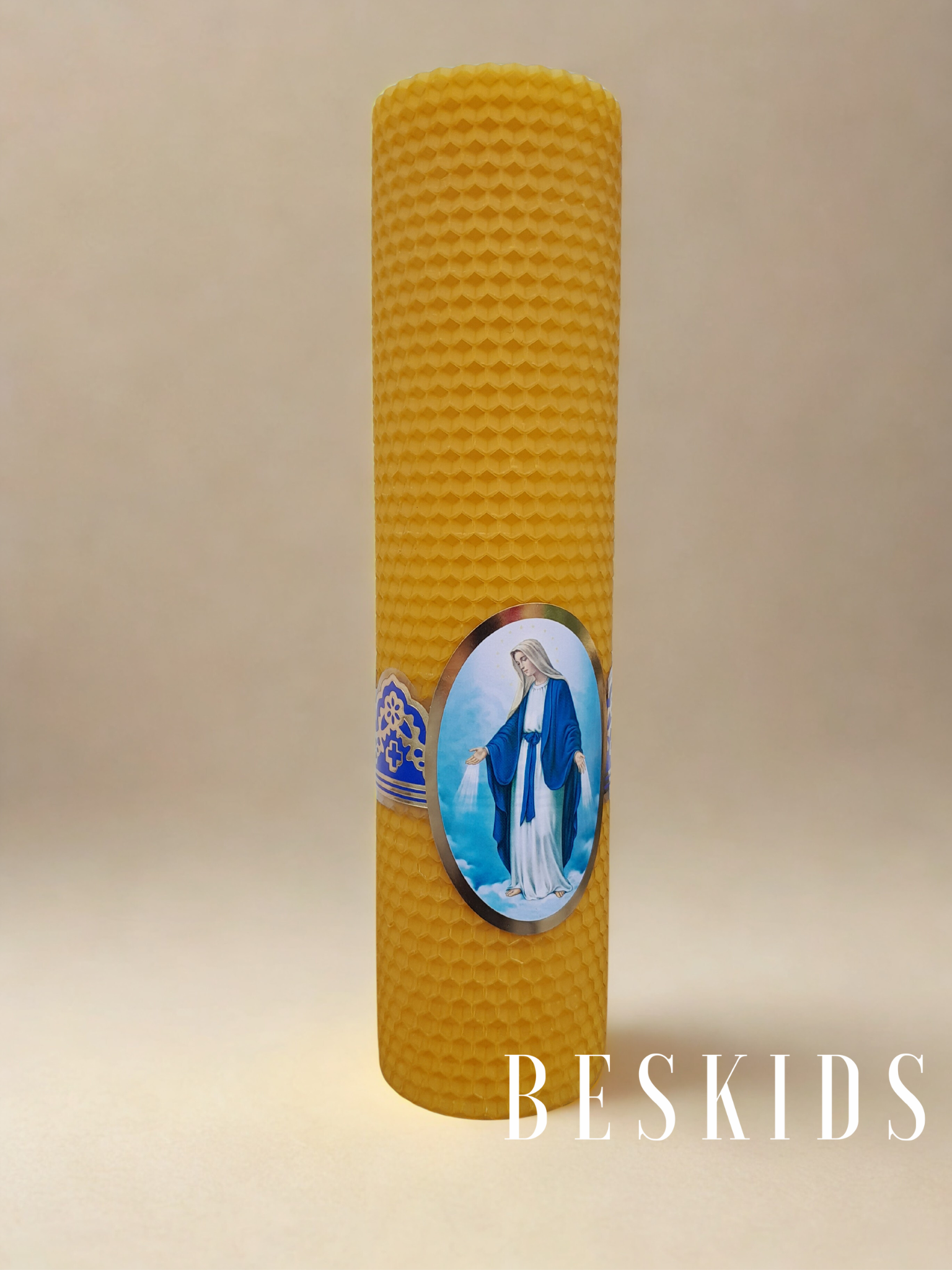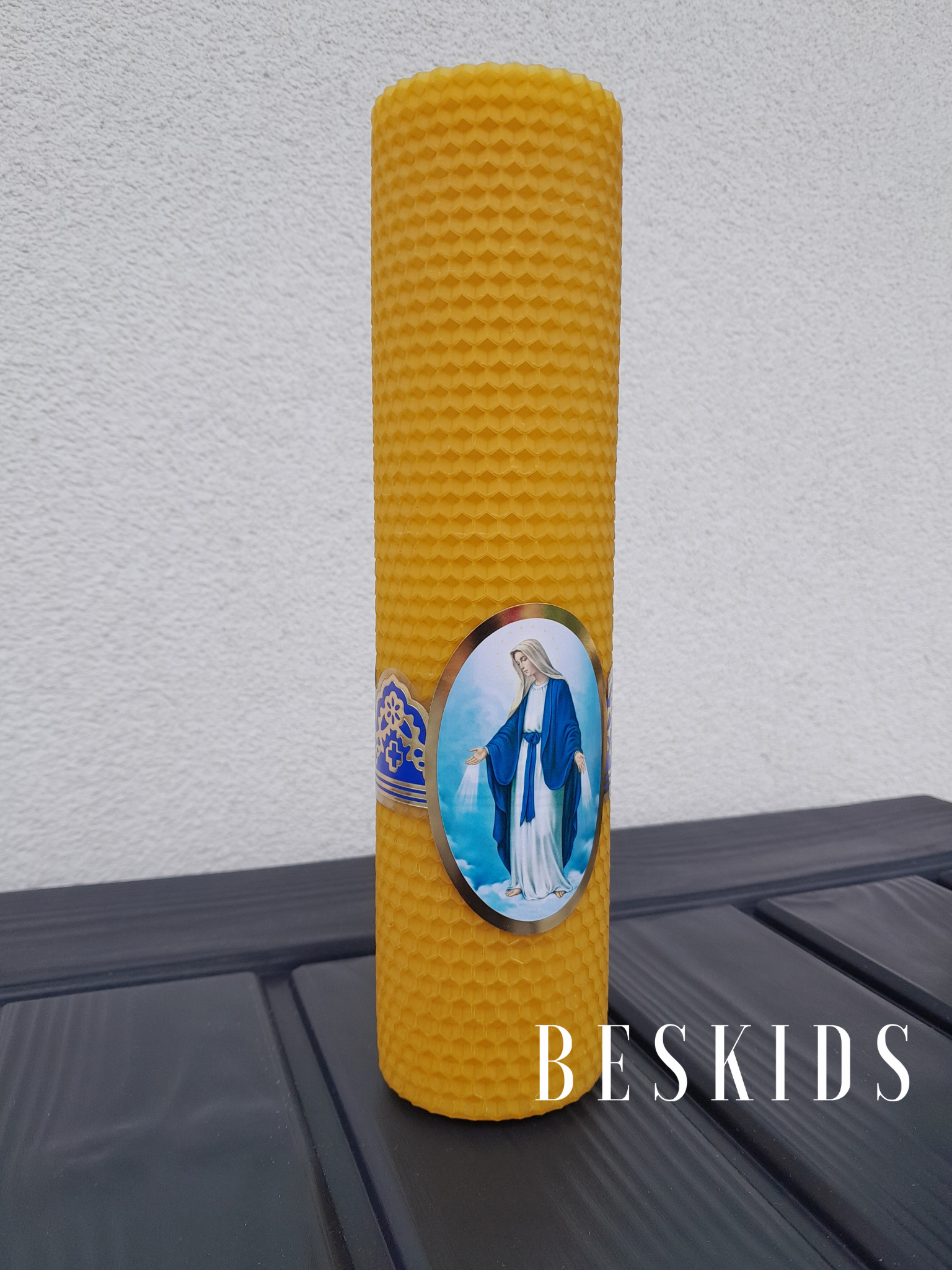Świeca z węzy pszczelej „Niepokalana” – 100% naturalna, ręcznie robiona z wosku pszczelego